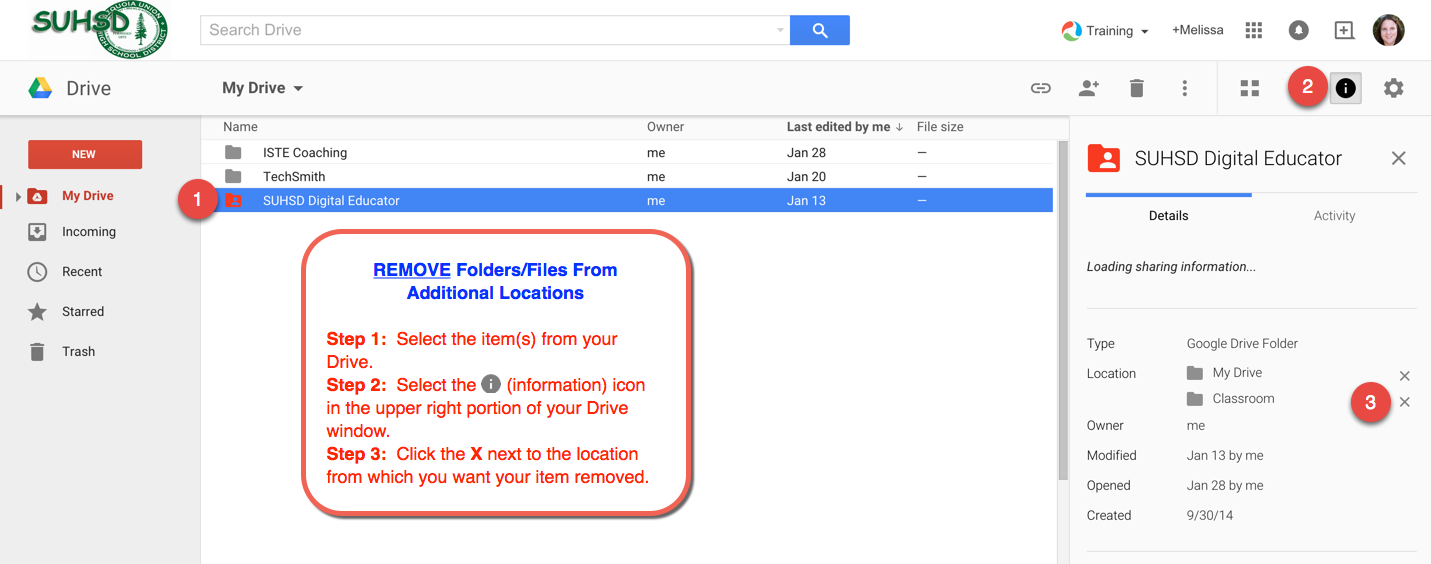 If you have switched over to the new Google Drive, you may have noticed that you can't have a file or folder "live" in more than one place in the same way that you could in the old Google Drive. When you have a file open, you can choose to move it to another location by clicking on the folder icon at the top of the page, and using the Control (on a PC) or Command (on a Mac) to check off multiple folders at once. But there wasn't an easy way to have entire folders reside in two (or more) different locations. But now you can! Joel Frey (@DrMetacognate) just posted how to do this on twitter, so I will share it with you. Add Folders/Files to Additional Folder Locations